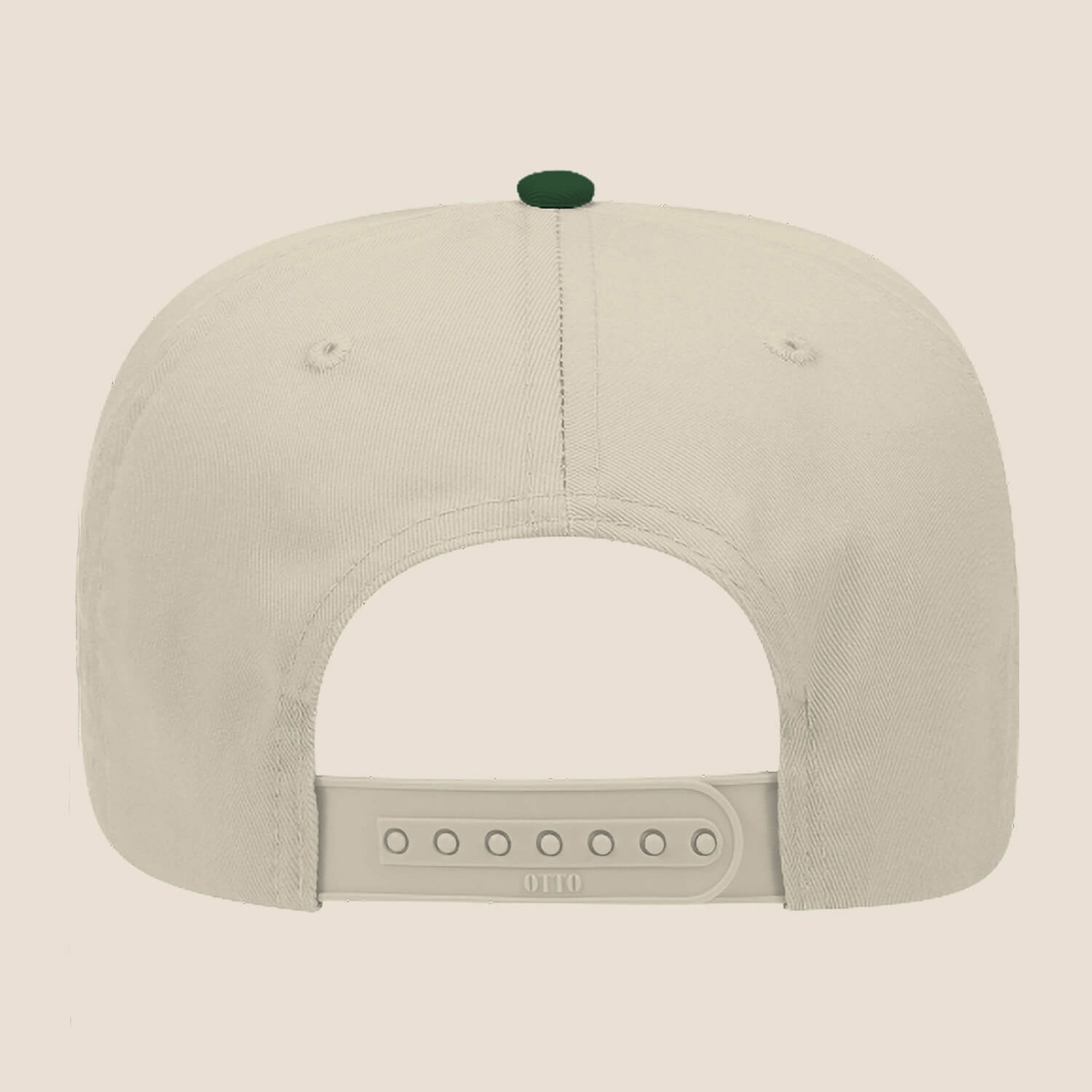 A structured two-tone ivory/forest-green work cap featuring our embroidered Calla Lily emblem. Designed with a firm front panel and classic snapback closure for a polished, functional look.